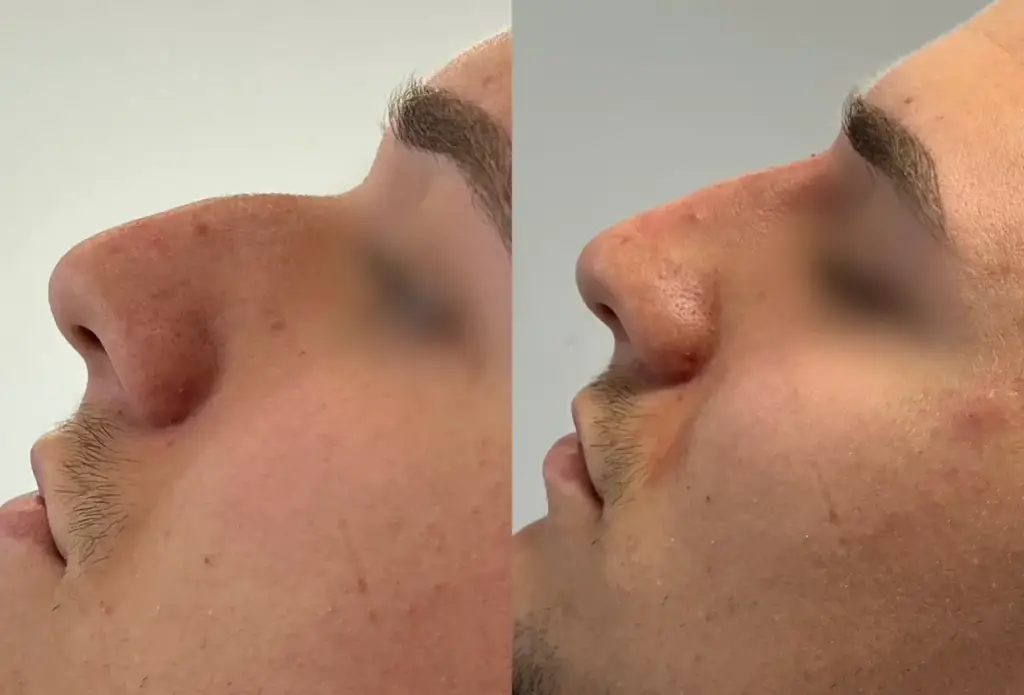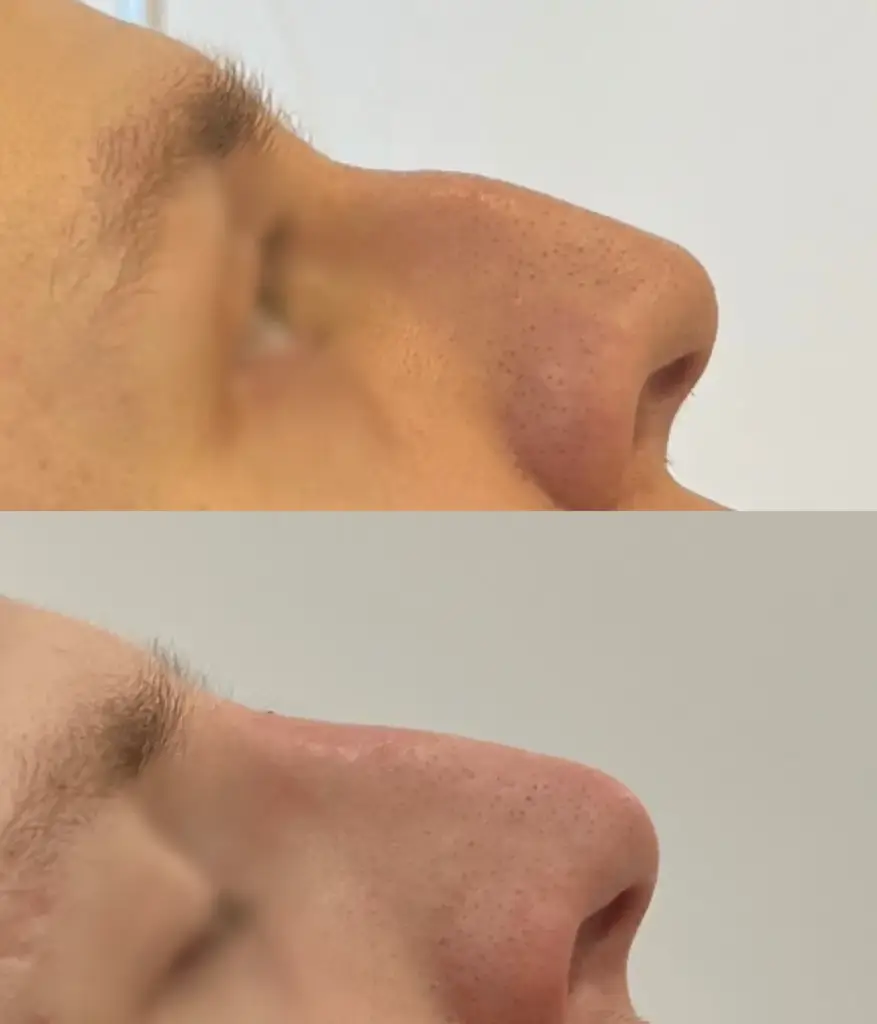 Poprawa kształtu nosa z użyciem kwasu hialuronowego trwa około 30 minut, a zabieg jest niemal bezbolesny (wstrzykiwany preparat zawiera również substancję o właściwościach znieczulających). Efekty natomiast widać już po zakończeniu zabiegu.